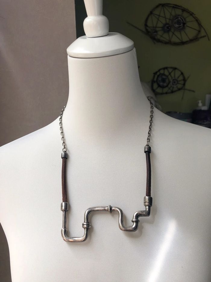 Collier original en métal et cuir N3 - photo numéro 2