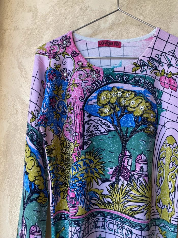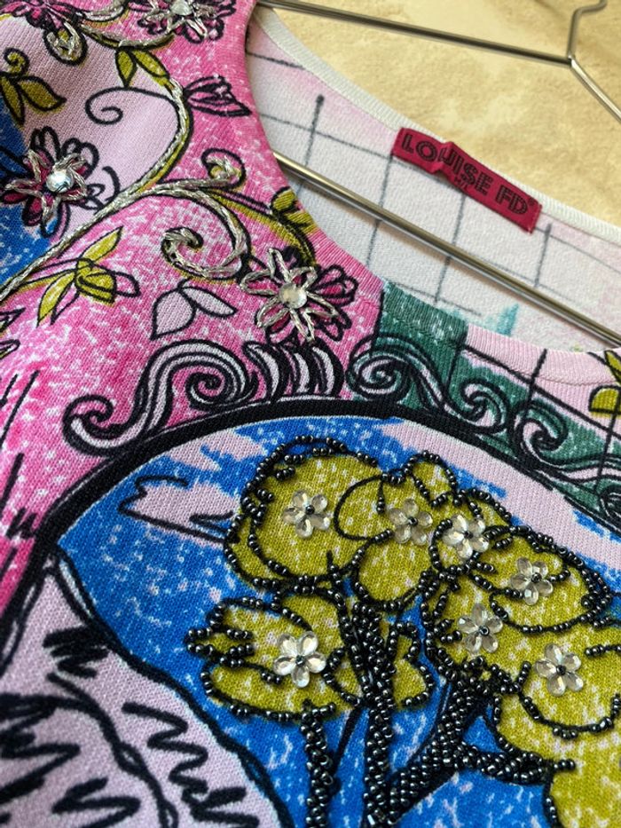Pull fin fantaisie à motifs brodés vintage Louise FD M/L - photo numéro 2