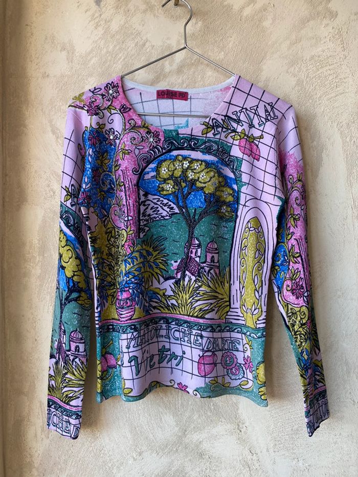 Pull fin fantaisie à motifs brodés vintage Louise FD M/L - photo numéro 1