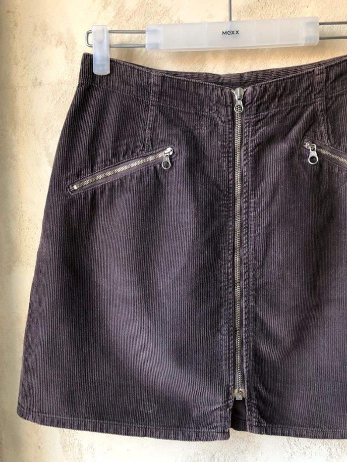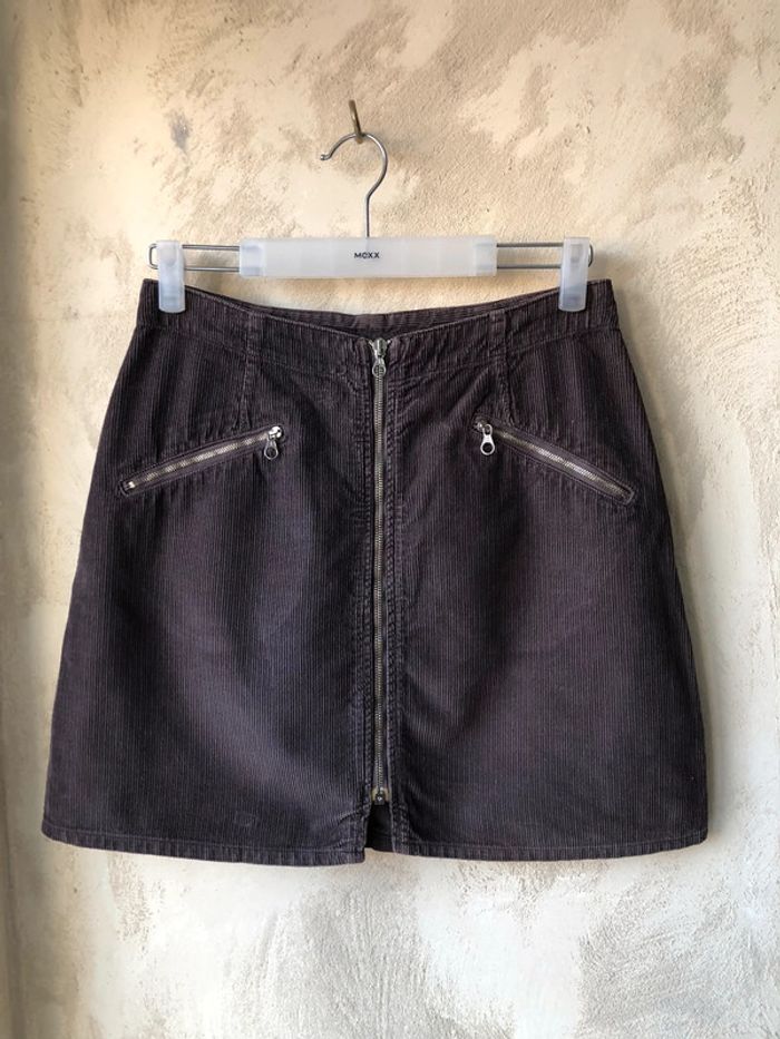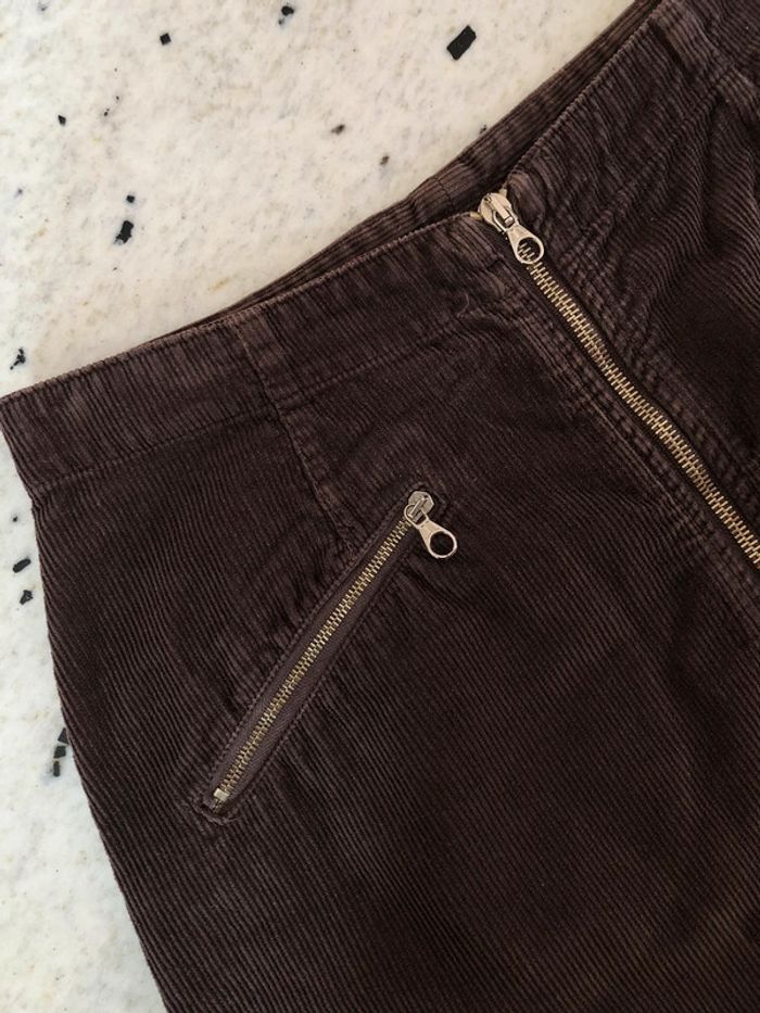 Mini jupe marron en velours côtelé. Zippée sur toute la hauteur. 2 poches zippées. Benetton Made in Italy. Largeur taille 37 Longueur 40 Correspond à un S