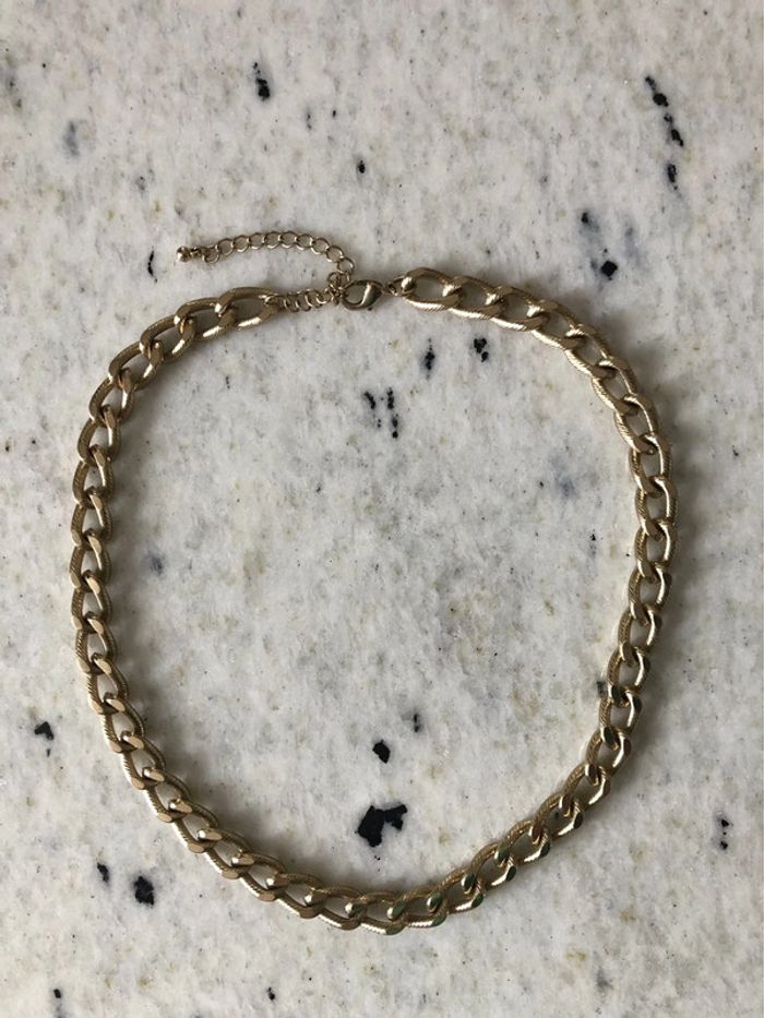 Collier chaînette en métal doré. Longueur 50cm Largeur 1cm