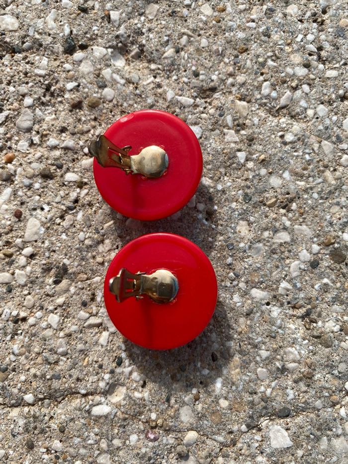 Boucles d’oreilles à pinces rouges et doré rondes vintage