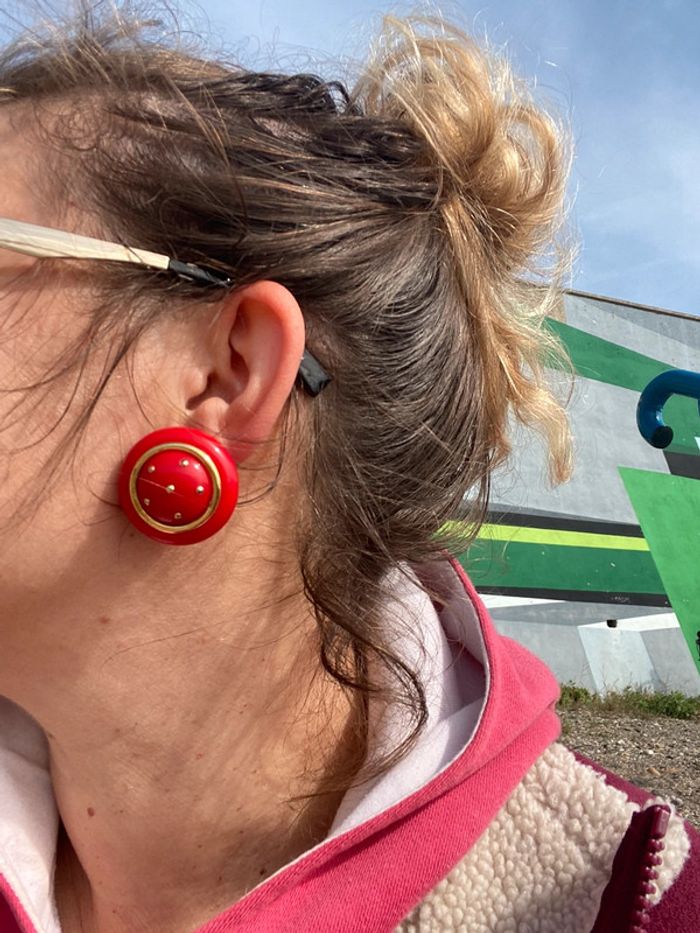 Boucles d’oreilles à pinces rouges et doré rondes vintage - photo numéro 5
