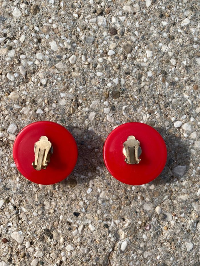 Boucles d’oreilles à pinces rouges et doré rondes vintage - photo numéro 3