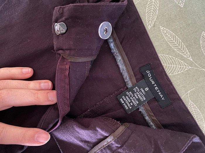 Pantalon court aubergine Courtenay 8 (36/38) Largeur taille 38 Largeur hanche 49 Hauteur taille 28 Longueur totale 85 Longueur jambe 59 Largeur cuisse 31 Largeur cheville 21