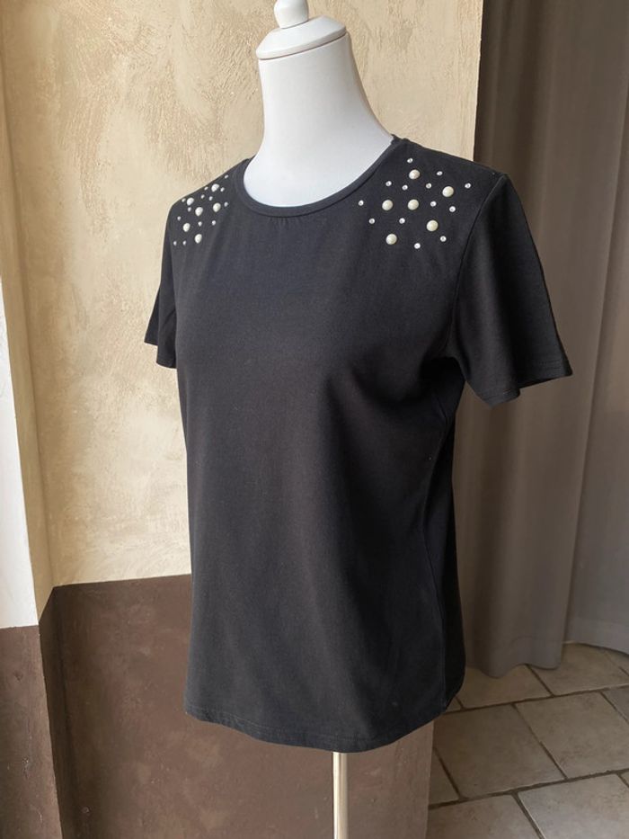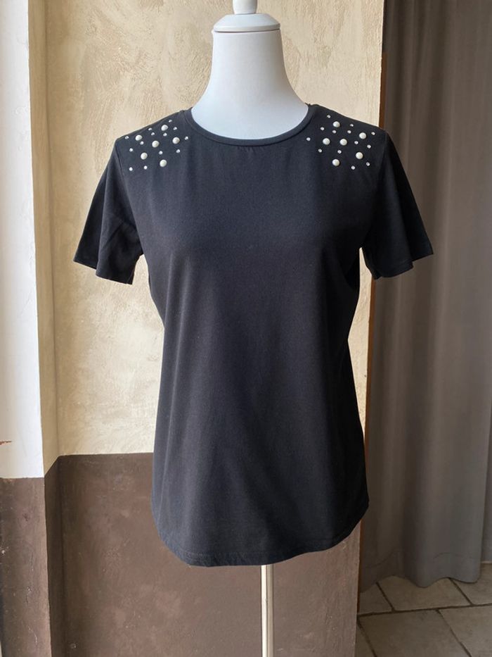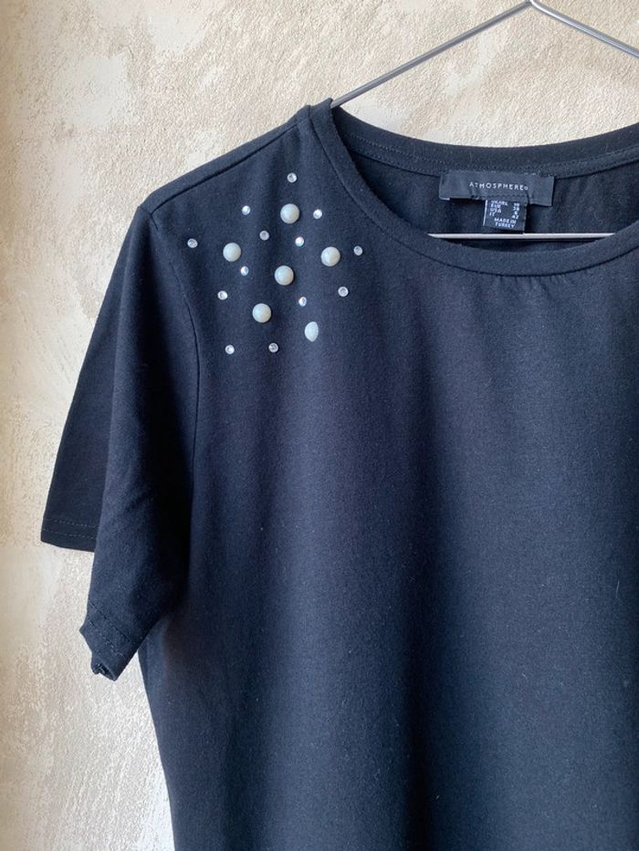T-shirt noir perlé Atmosphere 38 Largeur épaule 39 Largeur poitrine 48 Longueur dos 58