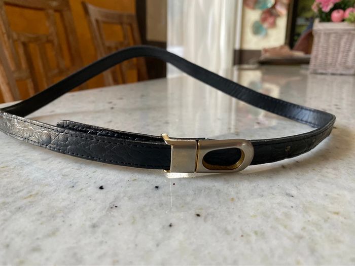 Ceinture fine noire vintage Longueur totale 85 Max 77 Mini 70 Largeur 1,5 Craquelures sur l’intérieur voir photo N’hésitez pas à faire un tour dans mon dressing et acheter en lot !!!