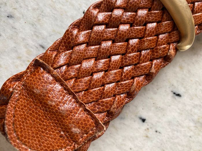 Ceinture tressé marron boucle dorée en laiton USMECO paris vintage #usmecoparis Longueur total 97 Largeur 6 Max 86cm de tour de taille Traces de frottement voir photo