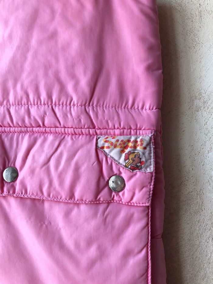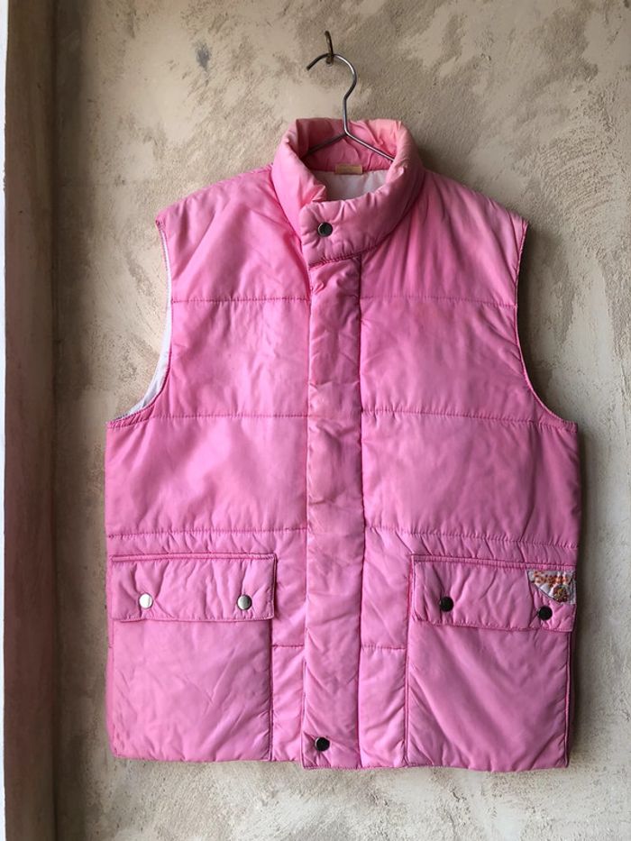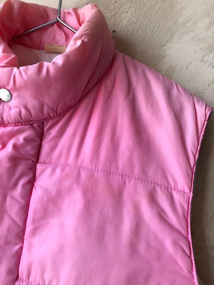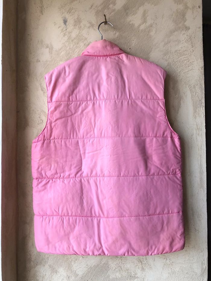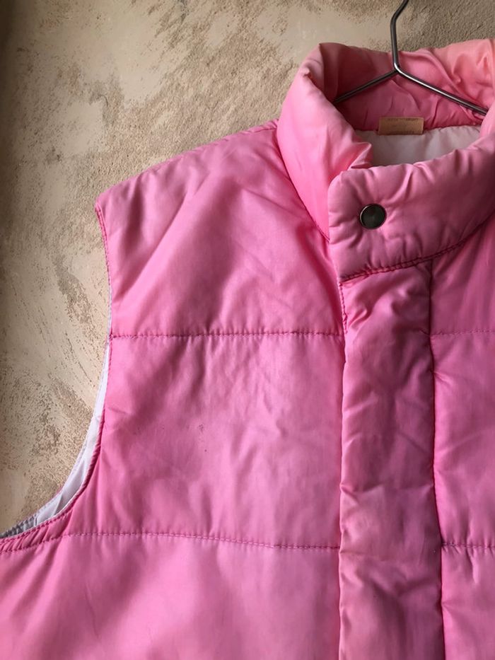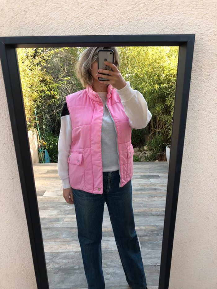 Doudoune sans manches rose vintage S oversize plusieurs traces à différents endroits un trou à col largeur épaules 40 largeur poitrine 51 longueur 65