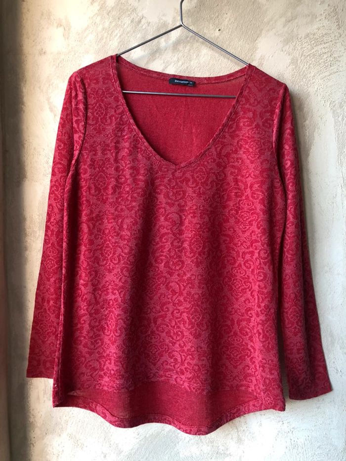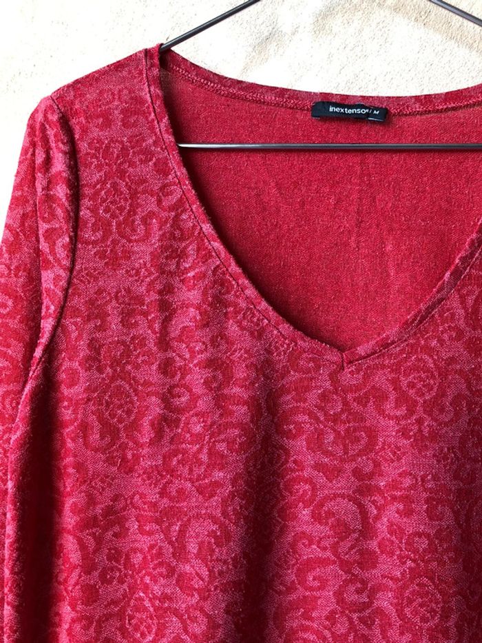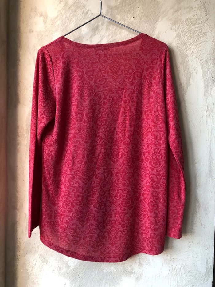 Top rouge In Extenso M largeur épaules 36 largeur poitrine 46 longueur manches 59 longueur dos 68