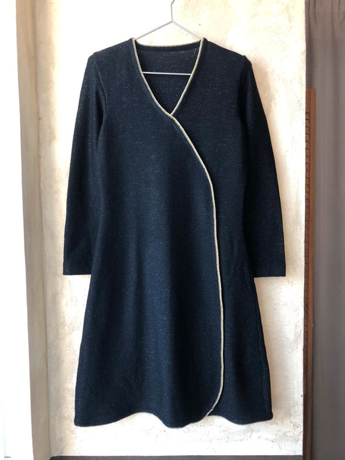 Robe en mailles noire liseré doré vintage 38/40 - photo numéro 1