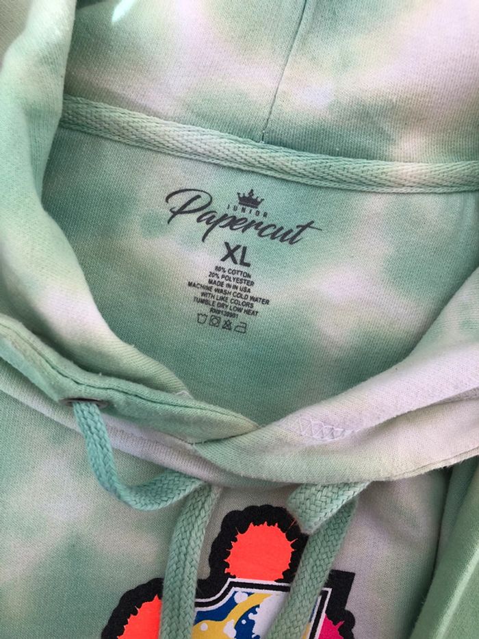 Sweat tie and dye vert USA Papercut XL junior #madeinusa Quelques légères tâches Largeur Épaules 42 Largeur poitrine 48 Longueur manches 65 Longueur dos 71