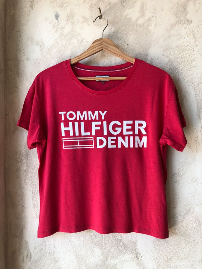 T-shirt court fuchsia Tommy Hilfiger S coupe courte et large largeur épaules 48 largeur poitrine 52 longueur 52