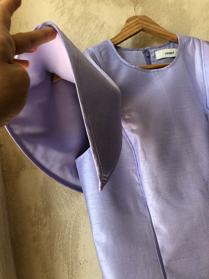 Jolie robe cocktail pastel lila Cameo XS #robecourte tissu épais largeur épaules 26 largeur poitrine 43 longueur 80
