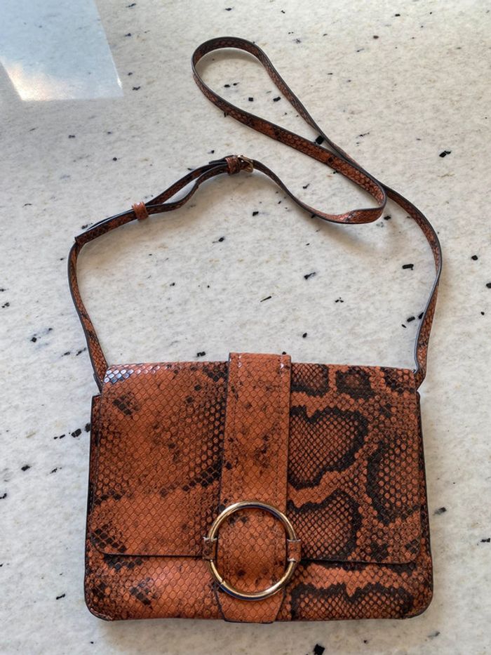 Sac style serpent Mango Fermeture pression aimanté 2 compartiments Bandoulière réglable 23x17