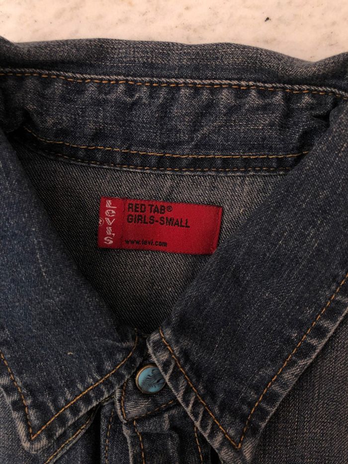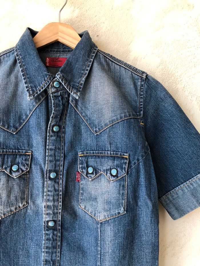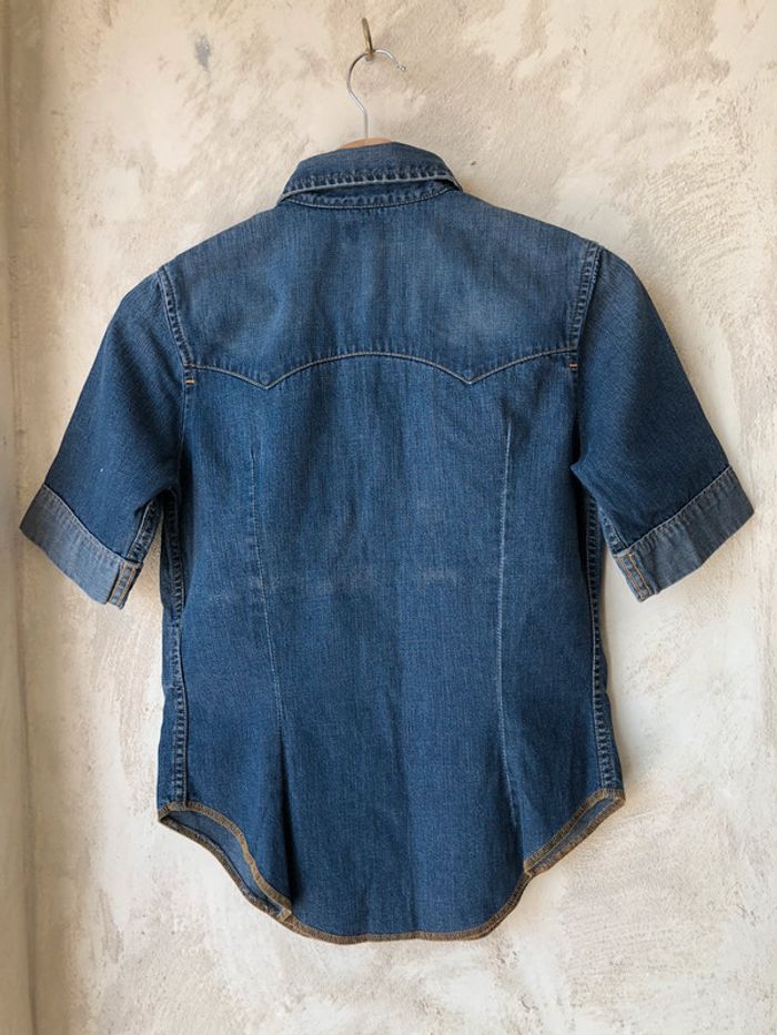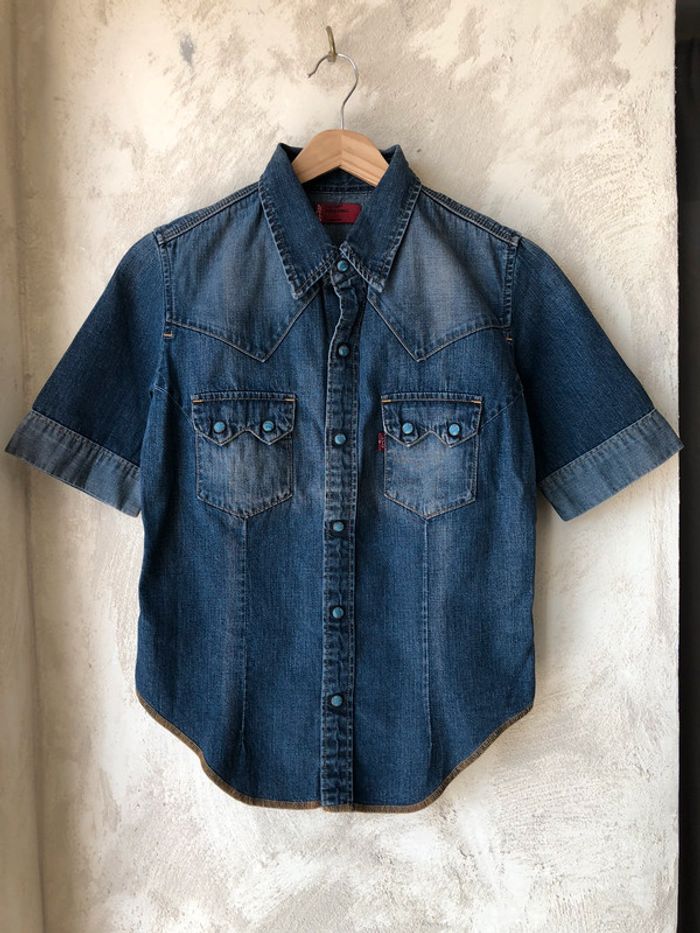 Chemisette en jean Lévis S #chemisemanchescourtes fermeture pressions largeur épaules 35,5 largeur poitrine 44 largeur taille 40 longueur 61