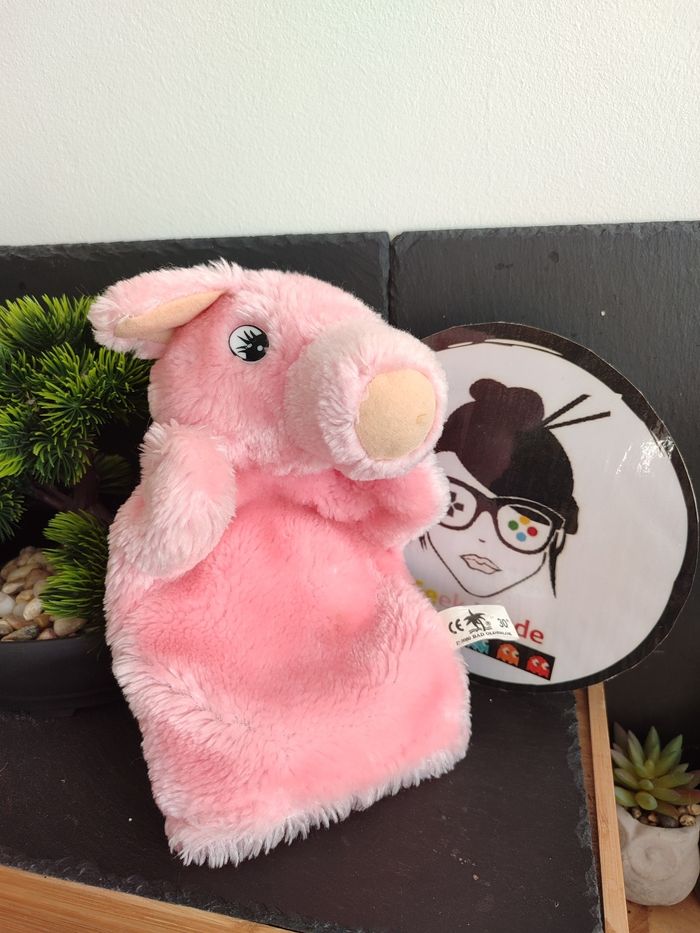 doudou marionnette à main cochon rose bad oldesloe beige ancien vintage DD003077 - photo numéro 1