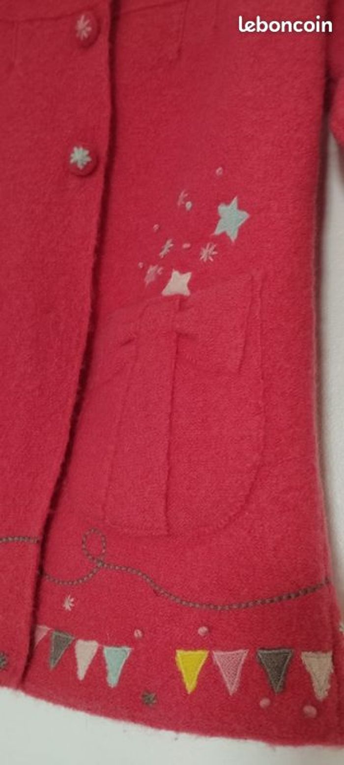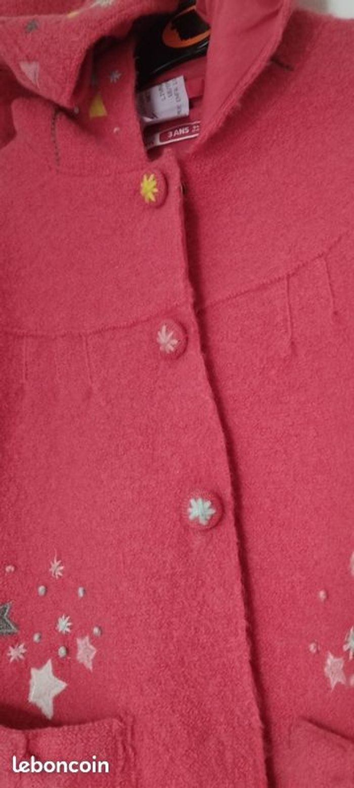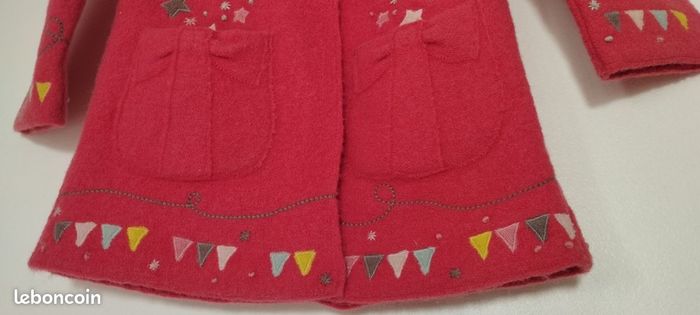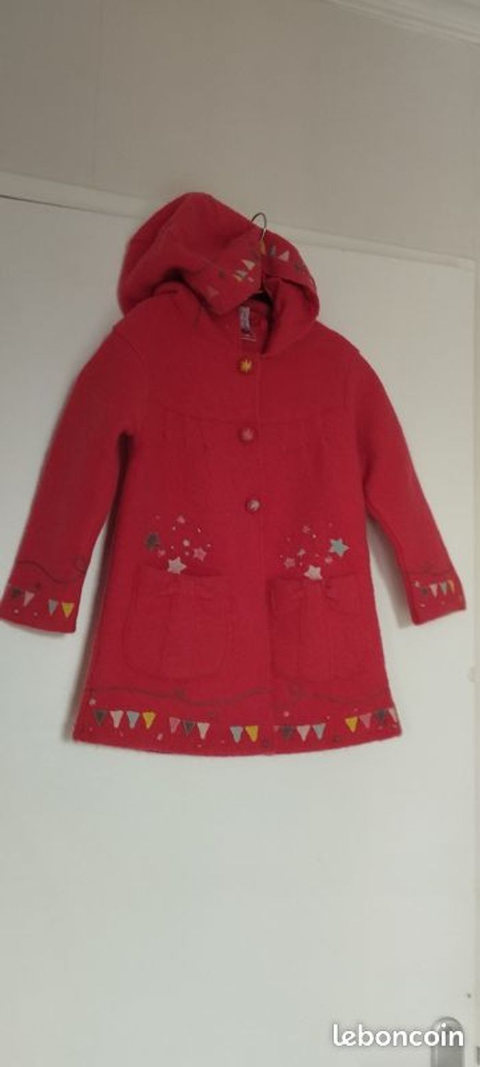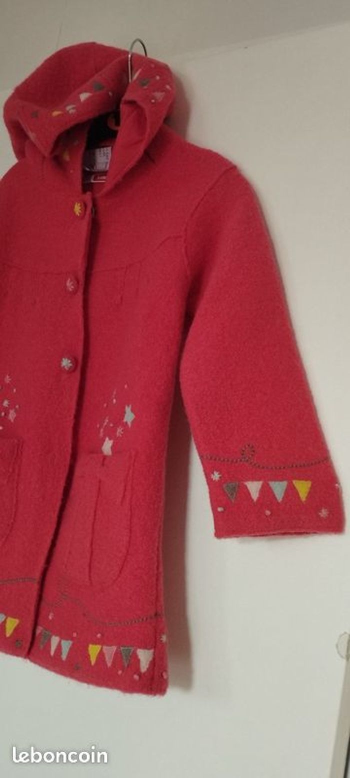 Manteau autrichien en pure laine de chez DPM. Doublure intérieur coton et polyester. Manteau à capuche. Boutonnage par pressions. 2 poches ouvrantes à l'avant. Couleur première framboise. A été porté quelques fois et il est en parfait état ! Il vient d'être laver au pressing !