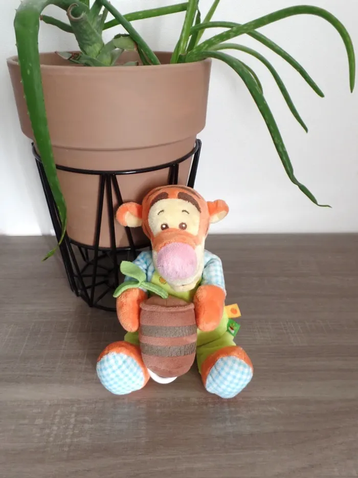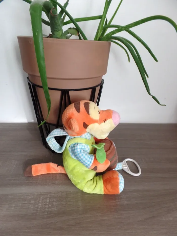Peluche Tigrou fermier jardinier Doudou musical Scratch à l'arrière pour l'attacher au lit de bébé ou la poussette Hauteur 21 cm assis Désinfecté à la vapeur Marque Disney Norme CE #tinkycindy_peluche #peluche #doudou #nounours #décochambre #ourspeluche #animauxpeluche #disney #tigrou #musical #PelucheMusicale #OursEnPeluche #OursMusical #PelucheBebe #DoudouMusical #JouetBebe #CadeauNaissance #ChambreEnfant #DoudouApaisant #EveilBebe #AccessoiresBebe #DoudouBebe #PelucheApaisante # #DisneyCollection #DisneyFans #CollectionDisney #Tigrou #Winnieourson #DisneyPrincess #JouetDisney #Collectionneurs #ObjetDeCollection #PeluchesDisney #DisneyLover #DisneyAddict #RareDisney