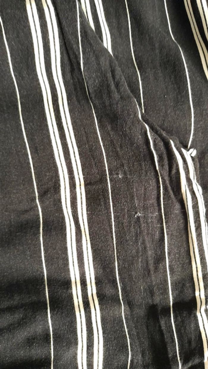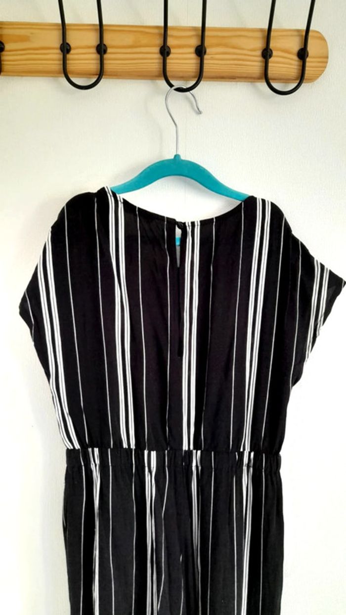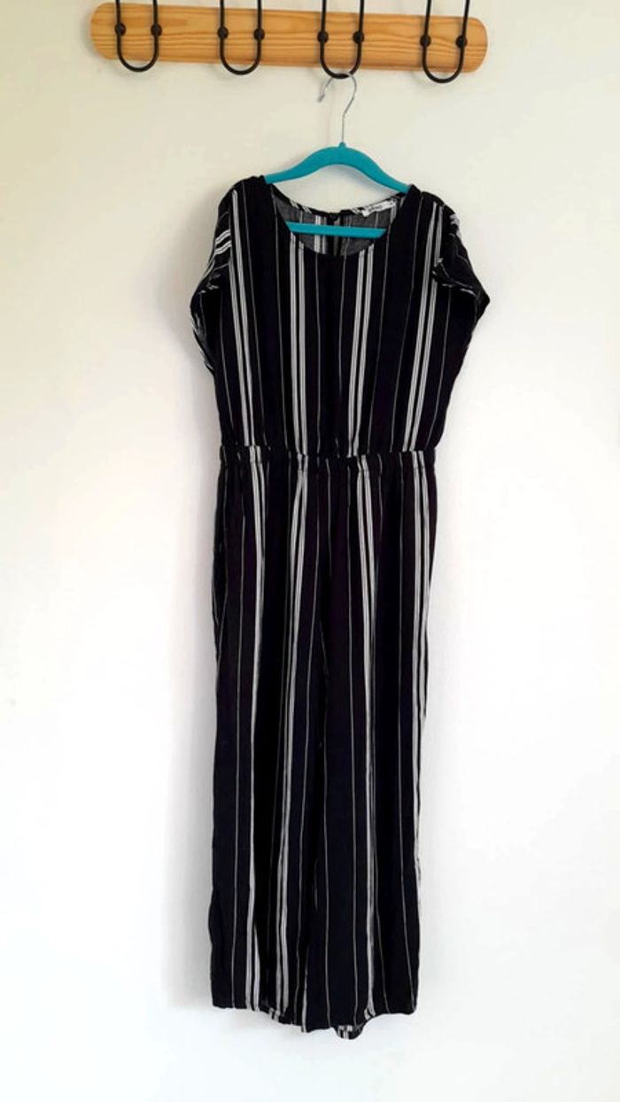 Combi-pantalon légère rayé noir et blanc Jambes larges et taille cintrée par élastique Manches courtes sans coutures aux emmanchures pour un tomber loose Fermeture avec un bouton dans le dos 2 poches italiennes Petit fil tiré sur l'arrière de la jambe gauche (photo 4) #tinkycindy_10ans #gémofille #gémo10ans #combinaisonété #combipantalon #combinaisonfille #combirayé #summervibes #printempsété