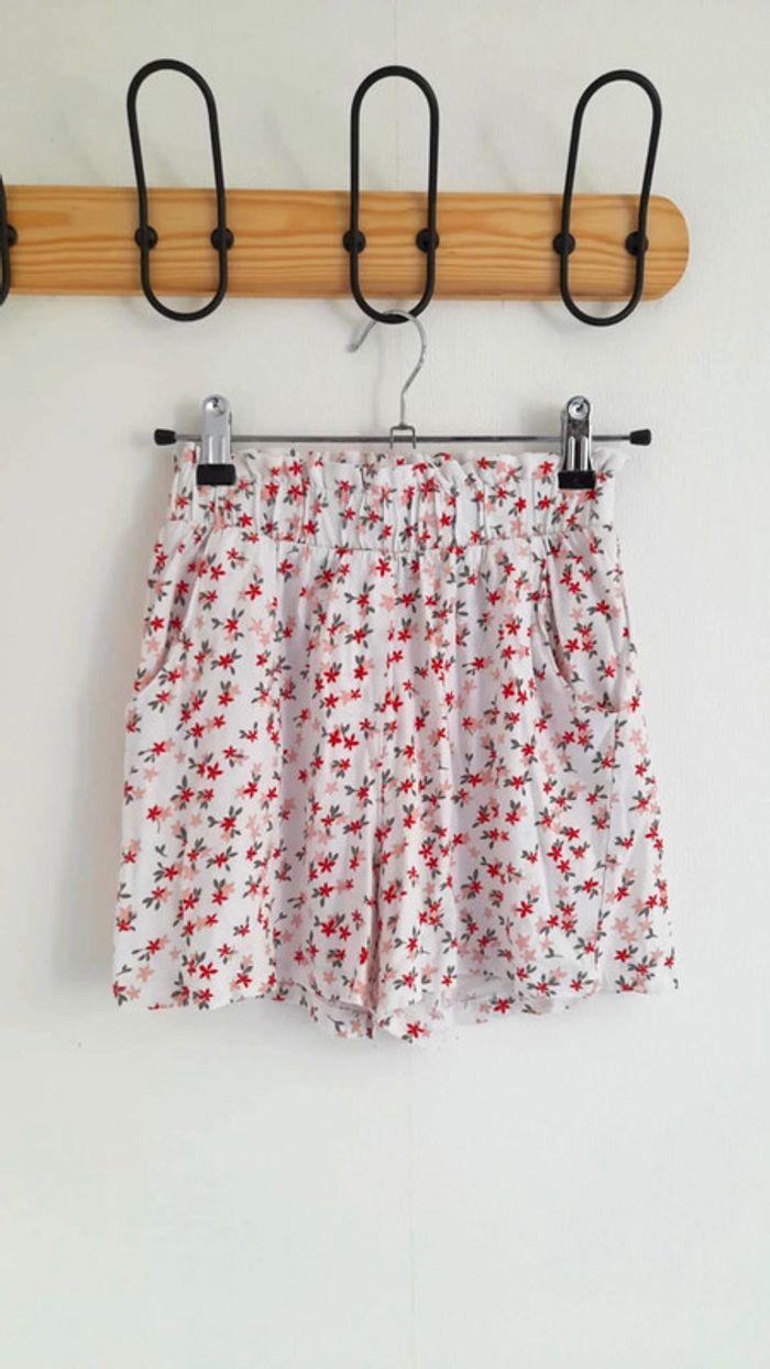 Short ample taille haute style paper bag Avec élastique à la taille Poches devant Imprimé fleuris #tinkycindy_9ans #shortfille9ans #shortgémo #summervibes #printempsété #shortpaperbag #gémo #gémofille #shortfleuris