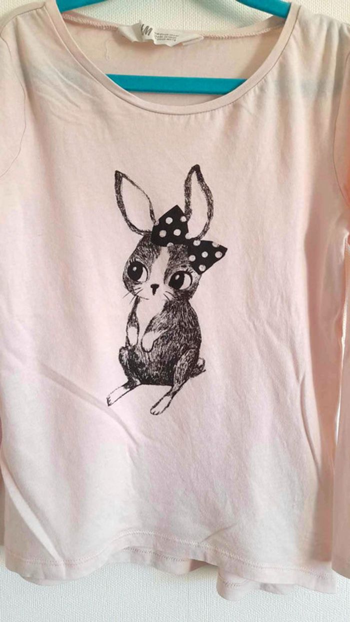 Tee-shirt rose clair manches longues H&M Motifs lapin Col rond Taille 6/8 ans #tinkycindy_6ans #teeshirtfille6ans #teeshirtfillefleurs #teeshirtlapin #teeshirtmancheslongues #fille6ans #automne #printemps #rentrée