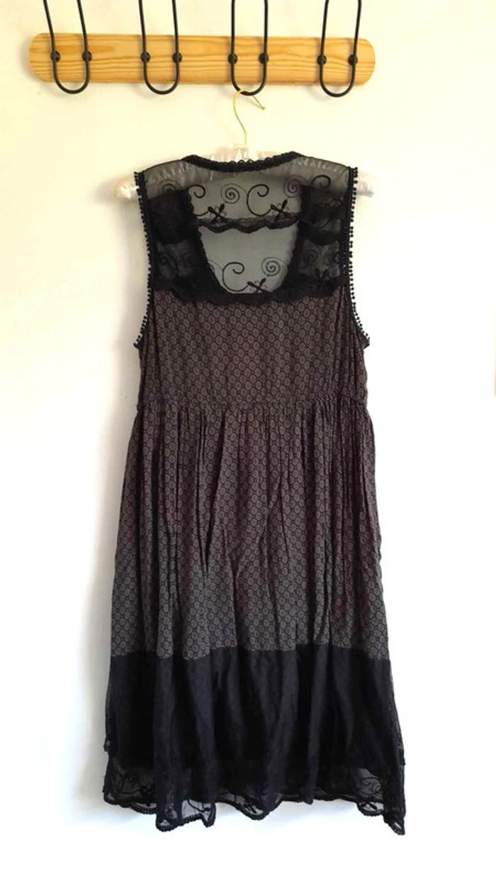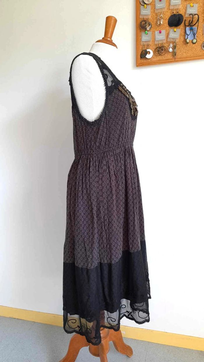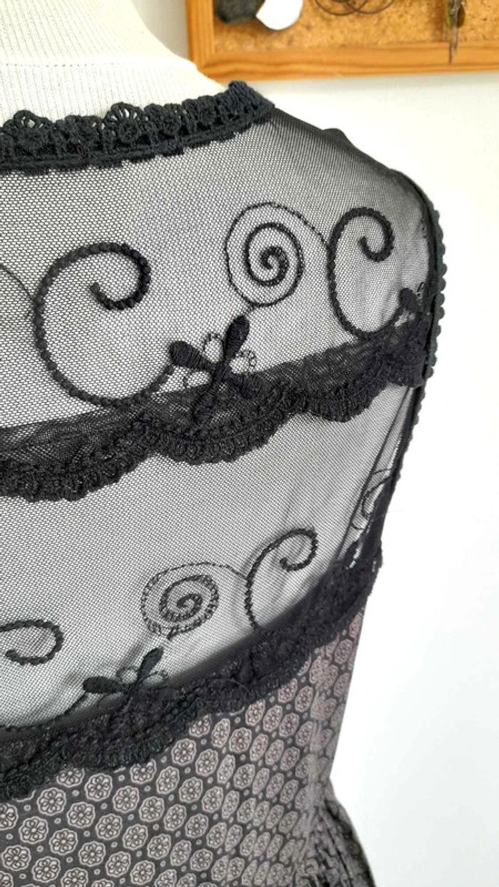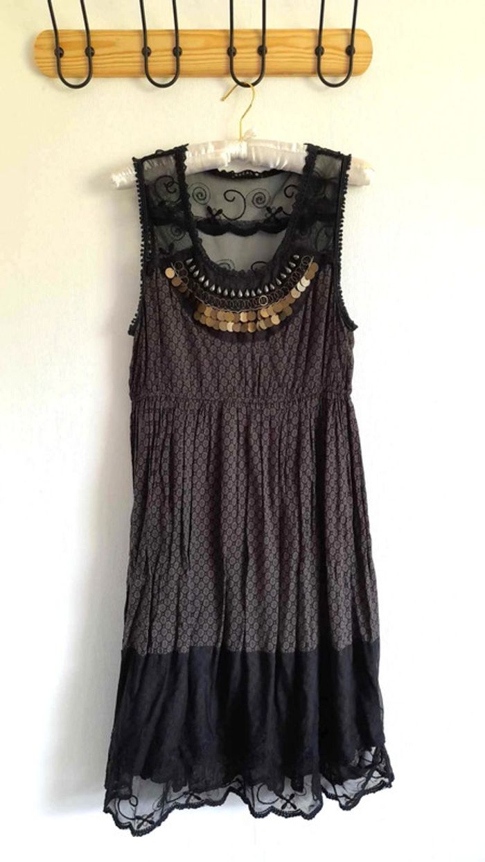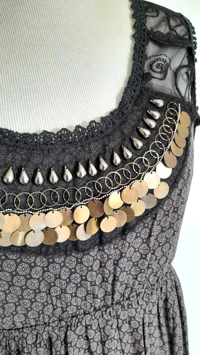 Robe noire longueur genoux 100 cm de l'épaule au bas de la robe Sans manches avec dentelle sur le haut devant et dos Sequins XXL, anneaux et perles en forme de gouttes métalliques (photo 3) Imprimé floral Doublure sur tout le bas de la robe (photo 4) #tinkycindy_femme #tinkycindy_42_femme #bréal #robebréal #robe42 #robenoire #vibs #modefemme #dentelle #floral #sequins