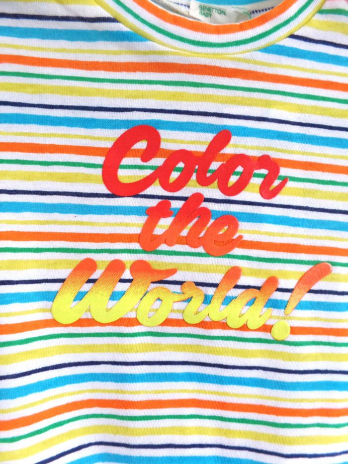 Tee-shirt Benetton Neuf Imprimé rayures multicolores Manches courtes Prix neuf en magasin 12.95€ #tinkycindy_6mois #tinkycindy_neuf #6mois #unitedcolorsofbenetton #benetton #teeshirtbébé #neuf