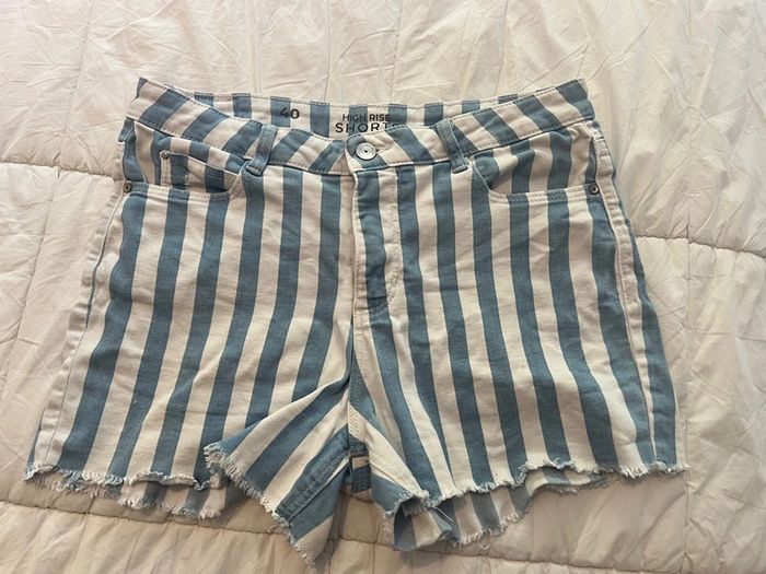 short femme bleu rayé blanc - photo numéro 1
