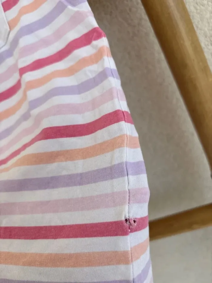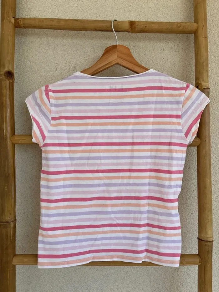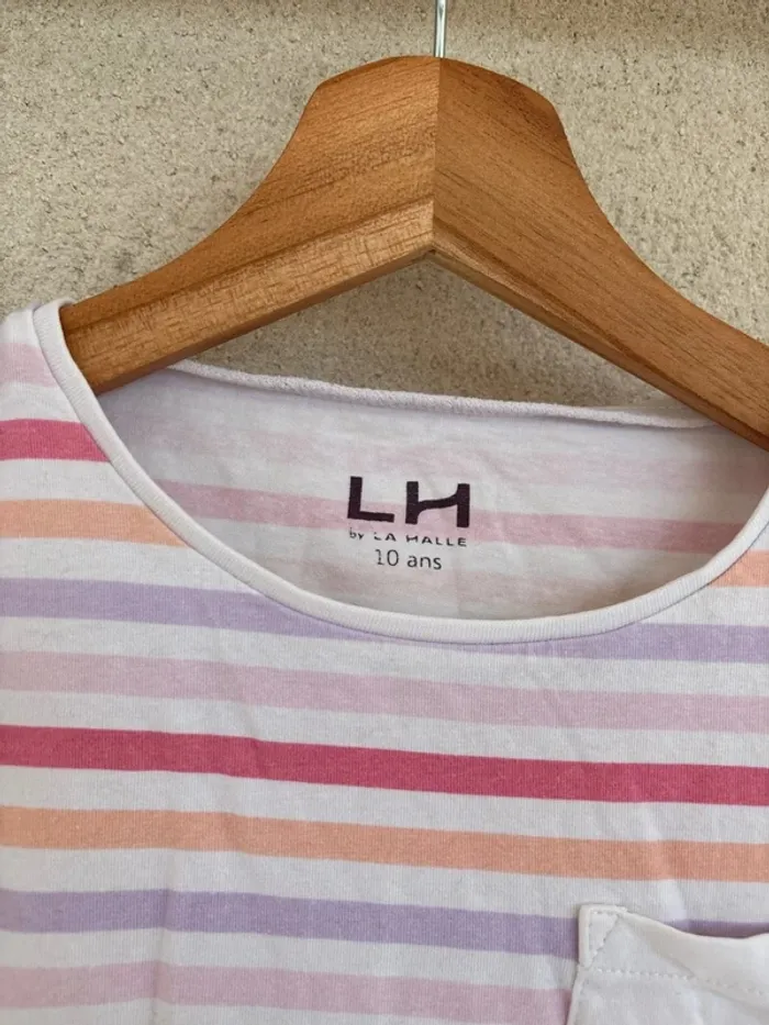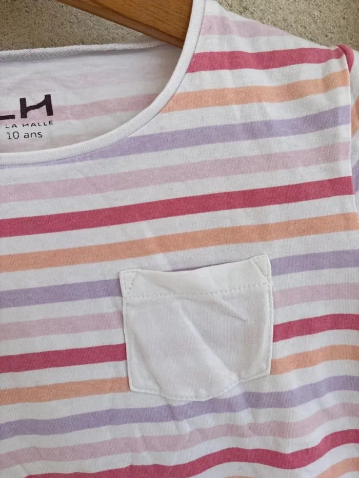 t-shirt stylé marinière colorée en très bon état mais troué au niveau de la couture la halle taille 10 ans