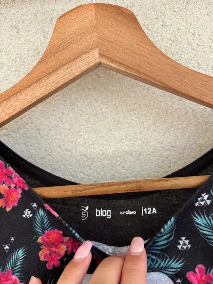 Débardeur noir et coloré motifs à fleurs Gemo taille 12 ans - photo numéro 1
