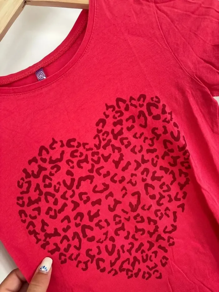 t-shirt rouge à manches longues avec cœur - gemo taille 10 ans - photo numéro 4