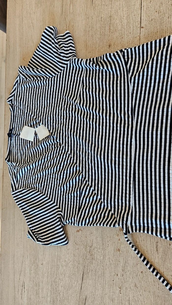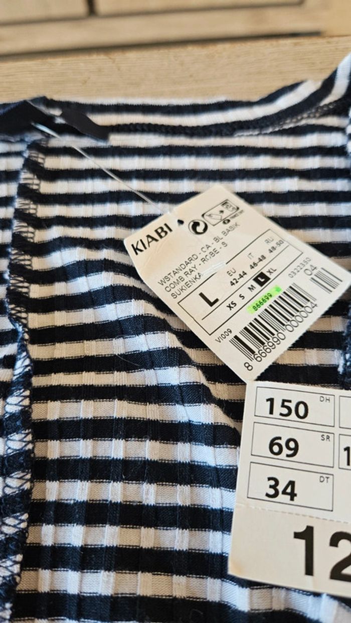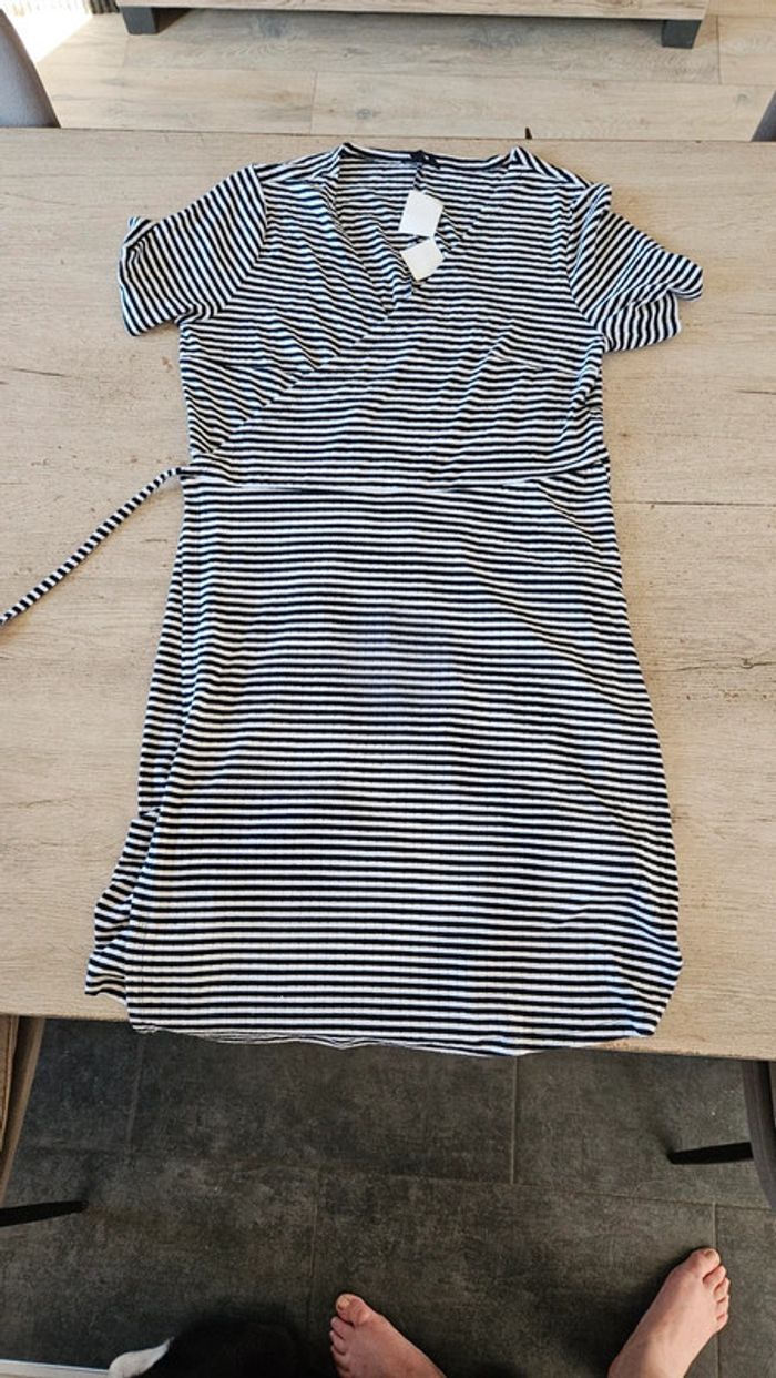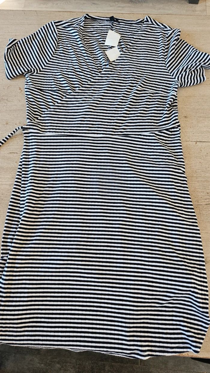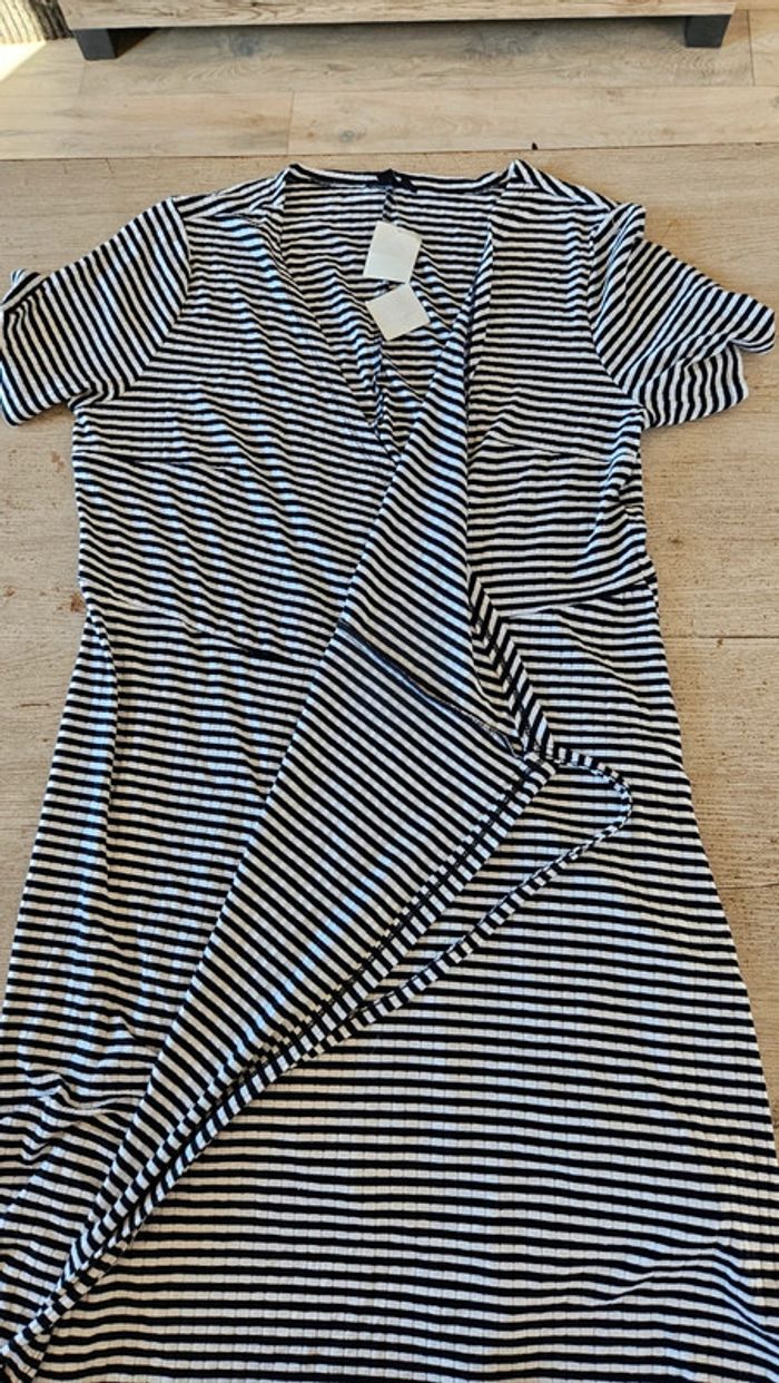 Jolie robe à nouer comme 1 cache coeur. Noire lignée blanche. Convient pour du M à XL. Jamais mise, toujours avec étiquette. Matière douce et agréable à porter. Achetée l année passée #deborahtock_femmeL