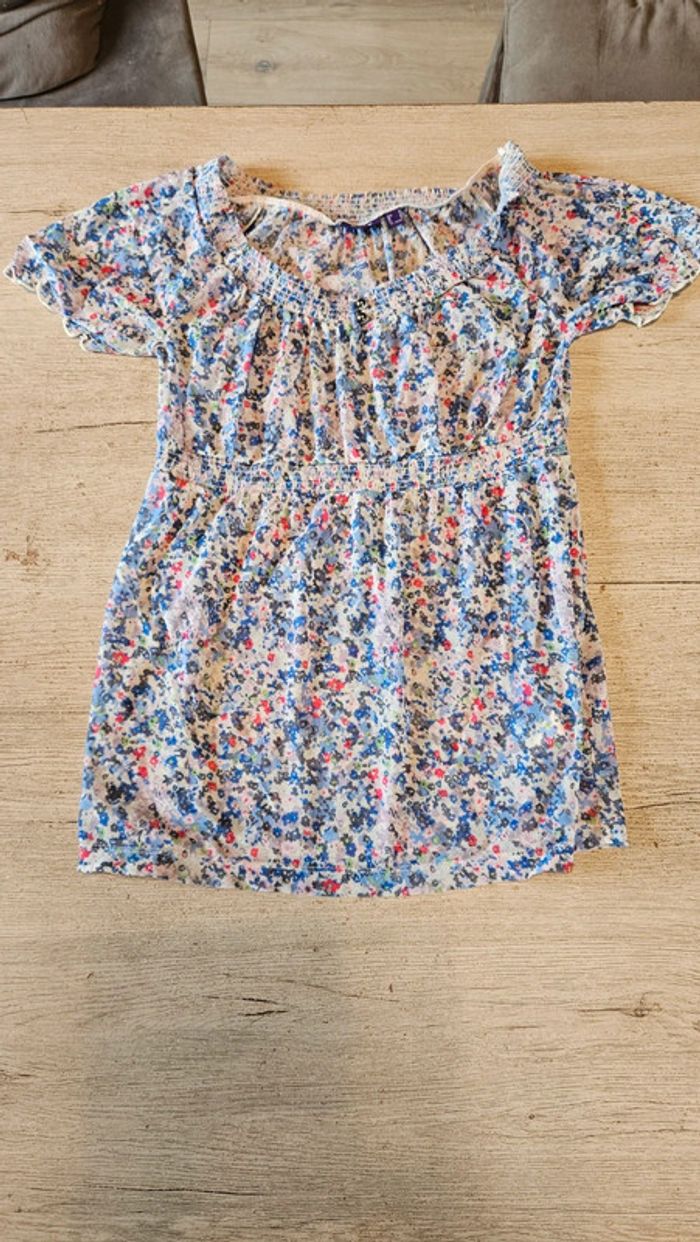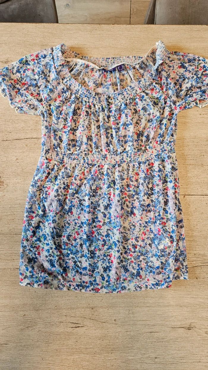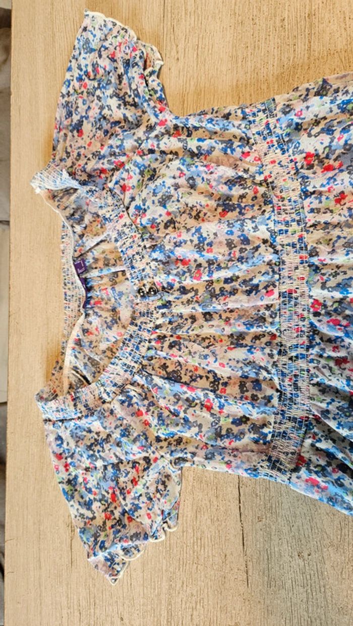 Jolie blouse à manches courtes. Col large et élastique Ceintrée en dessous de la poitrine. Très peu mise. Elle est bleue pale transparentes avec des dessins. Mise une ou 2 fois, donc nickel #deborahtock_femmeM