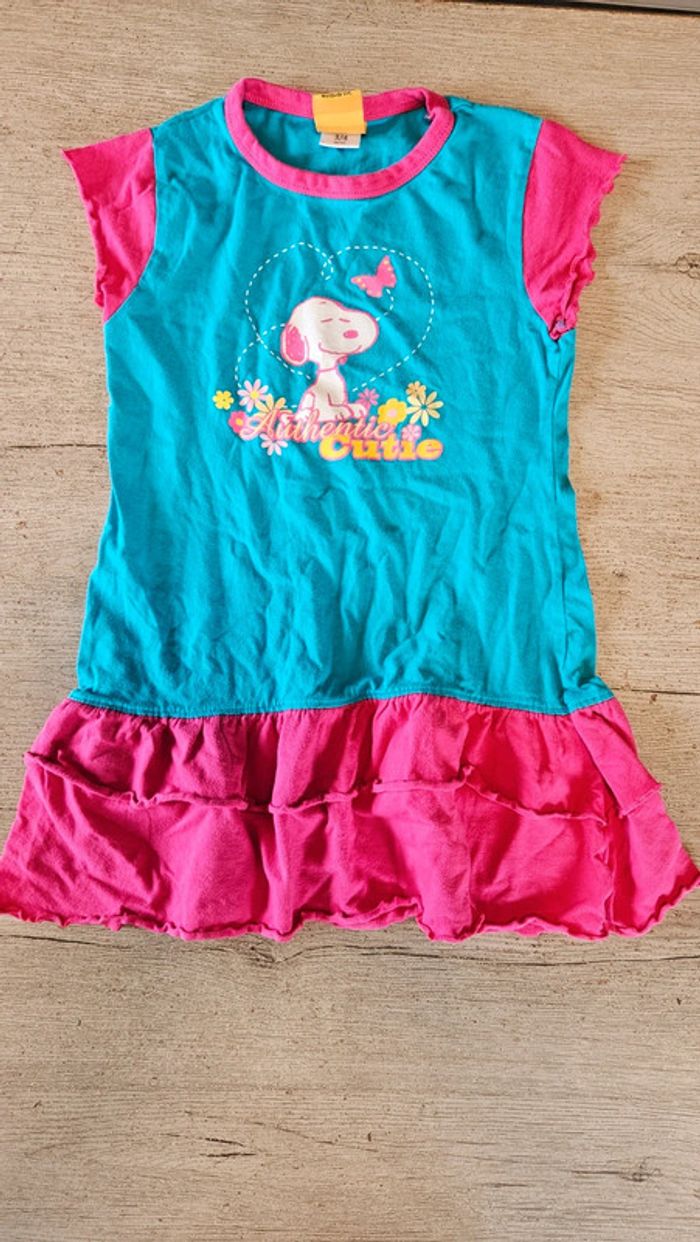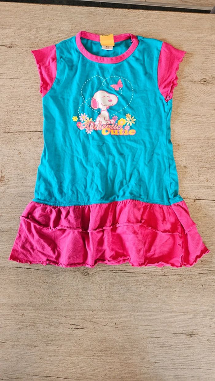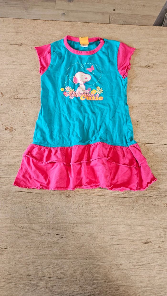 Robe de nuit Snoopy fushia et turquoise à manches courtes, 3/4 ans, peu mise - photo numéro 1