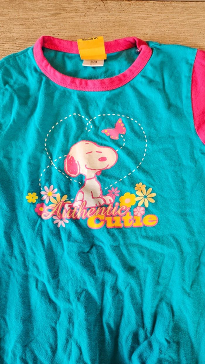Robe de nuit Snoopy fushia et turquoise à manches courtes, 3/4 ans, peu mise - photo numéro 6