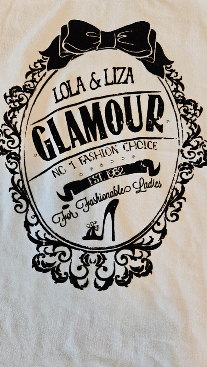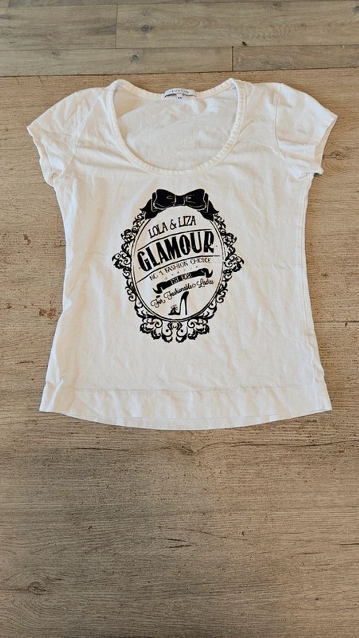 T shirt manches courtes, blanc avec inscription noire, Lola & Liza, 44, nickel