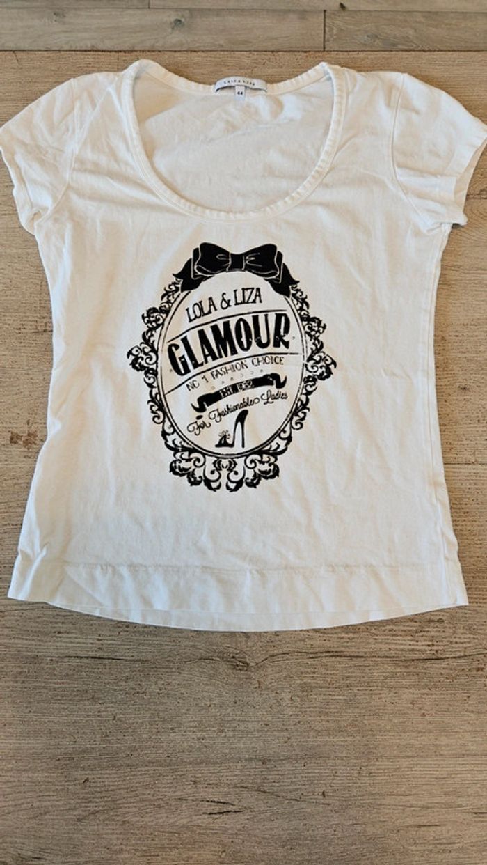 T shirt manches courtes, blanc avec inscription noire, Lola & Liza, 44, nickel - photo numéro 1