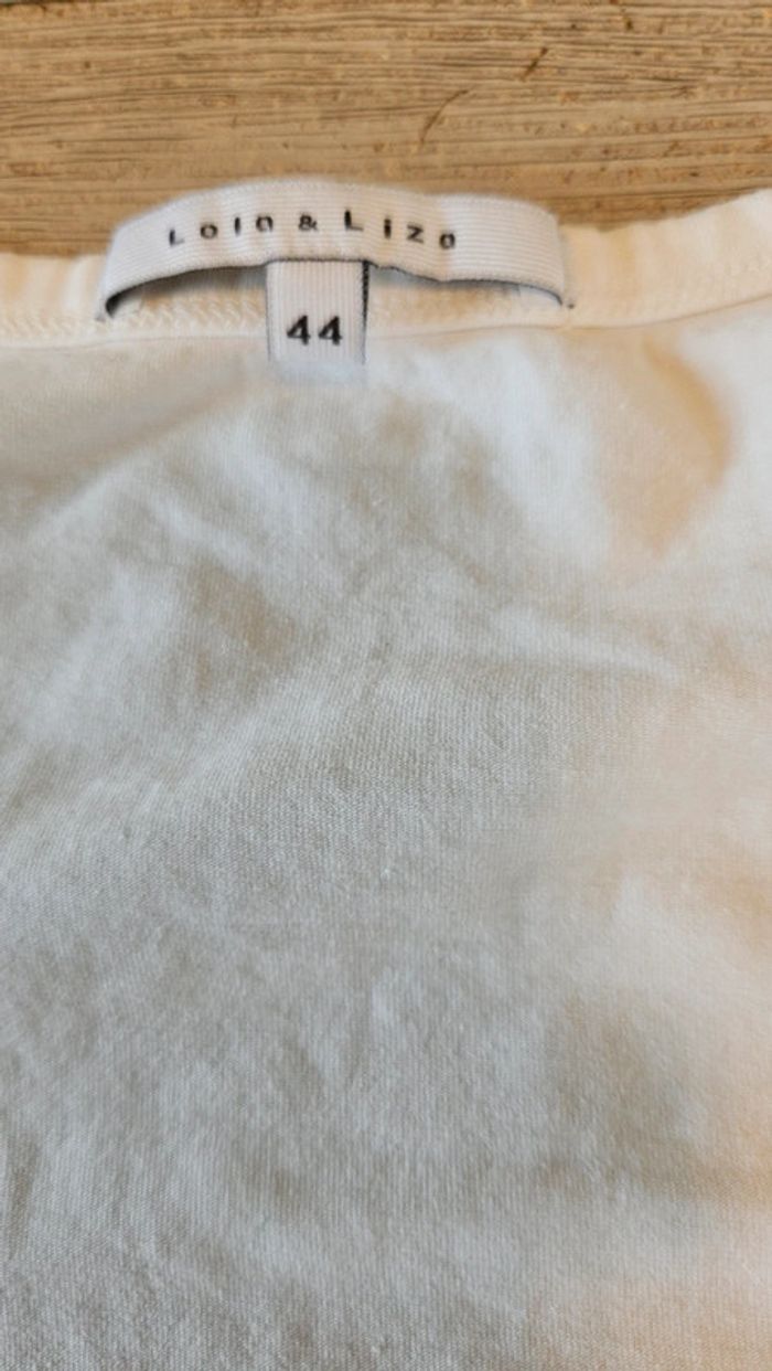 T shirt manches courtes, blanc avec inscription noire, Lola & Liza, 44, nickel - photo numéro 3
