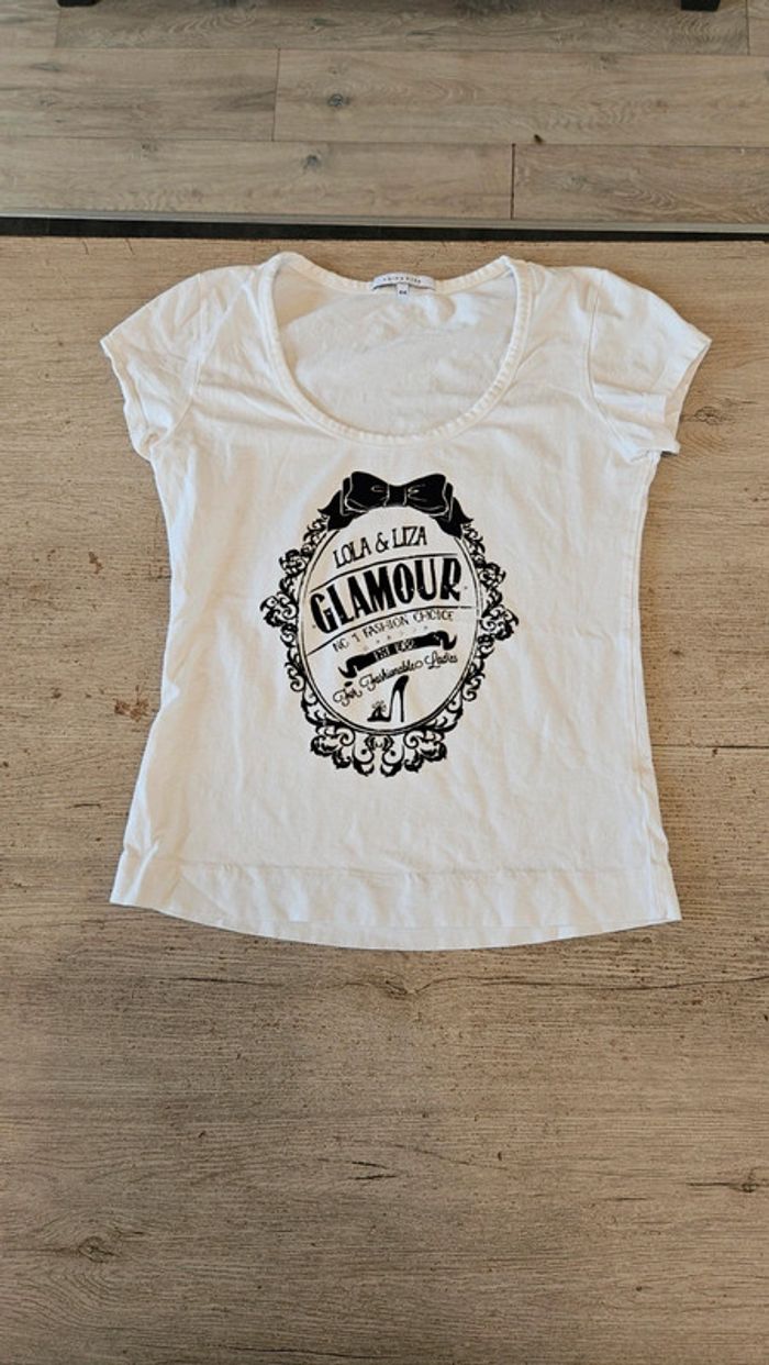 T shirt manches courtes, blanc avec inscription noire, Lola & Liza, 44, nickel - photo numéro 2