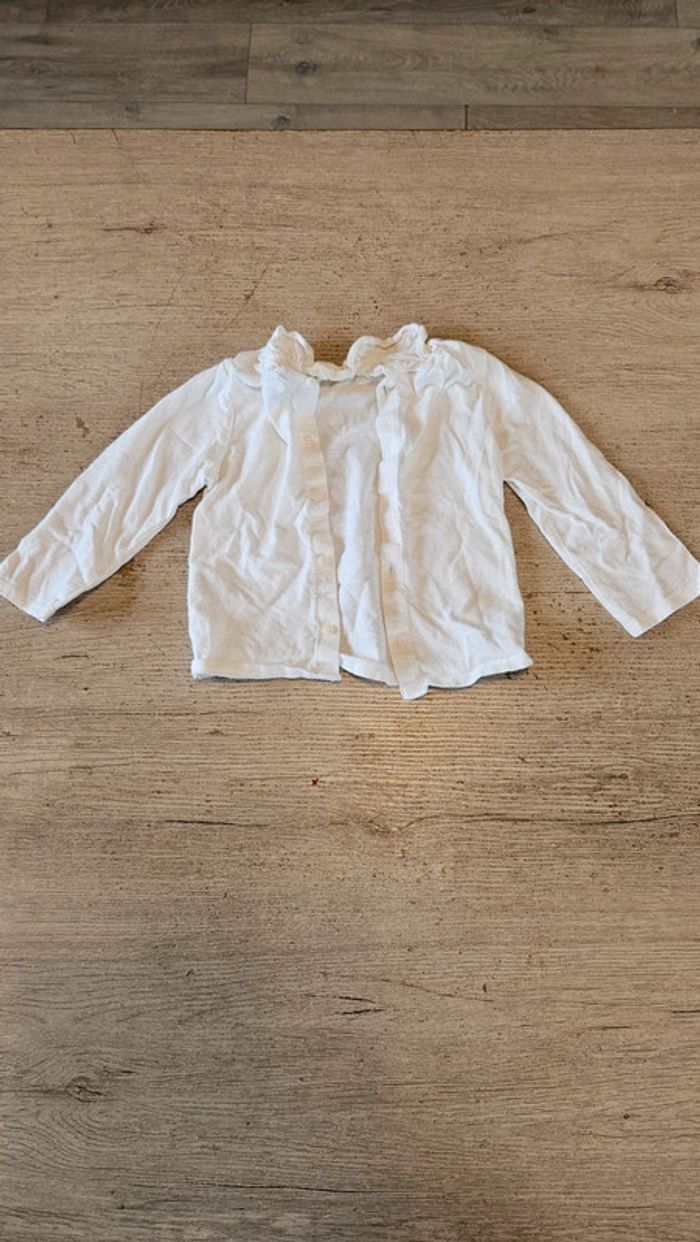 Jolie chemise avec des froufrous au col. Motif léger. Se ferme par des boutons. Convient bien pour du 2 ans #deborahtock_2ans