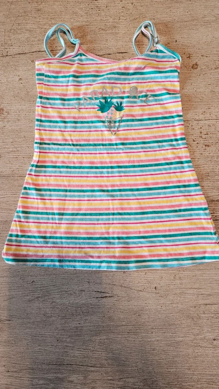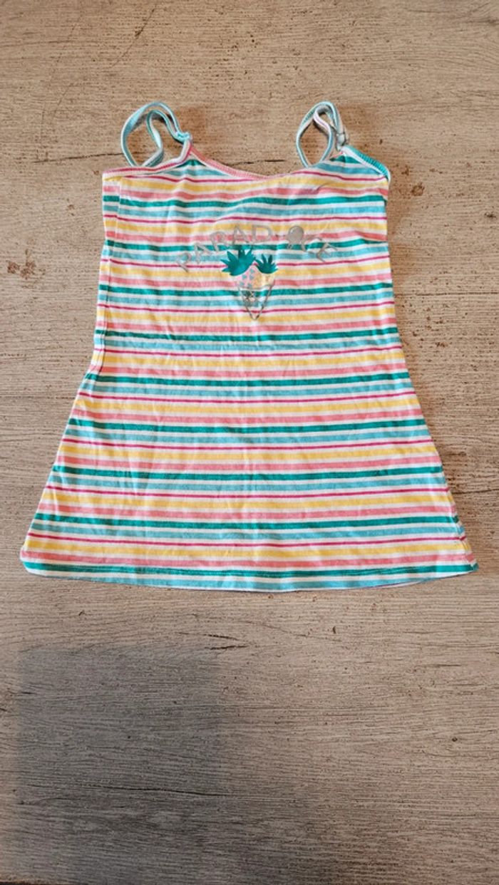 Jolie robe simple à bretelles règlables. Lignée de plusieurs couleurs. En excellent état car mise 1 ou 2 fois. Convient pour du 3 à 4 ans #deborahtock_4ans
