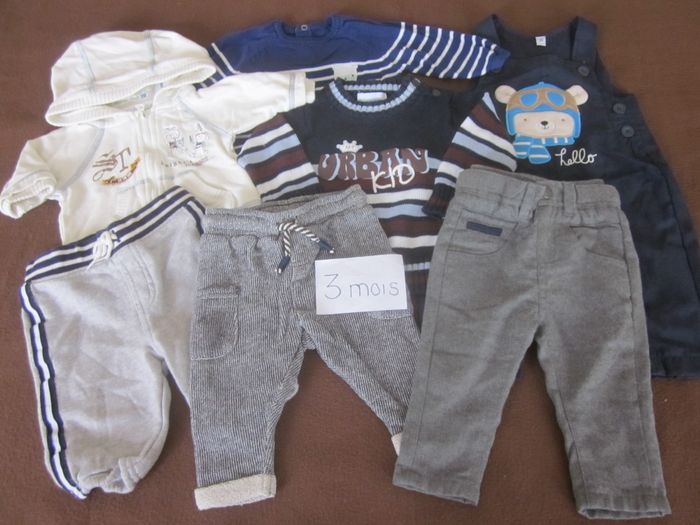 3m, 3 pantalons (dont un ralph lauren) + 2 pulls ml + salopette + veste à capuche, tex, vert baudet, kitchoun, tao, ralph lauren