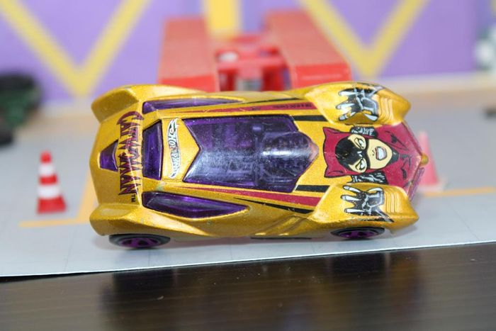 Voiture miniature fantaisiste Sinistra Échelle : Environ 1:64 Couleur : Moutarde métalisé avec tampon Catwoman sur le capot et à l'arrière Vitrage : Teinté violet Chassis : Métal peint en violet Intérieur : noir Fabricant : Hot wheels Année de production : 2003 Designer : Mark Jones Voiture miniature en bon état. Issue d'un pack exclusif Batman de 5 voitures Les axes de roues ne sont pas tordus, vitrage intact. Rares manques de peinture Réponds avec plaisir aux demandes d'informations complémentaires Réponse rapide envoi soigné dans les meilleurs délais