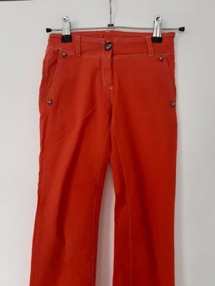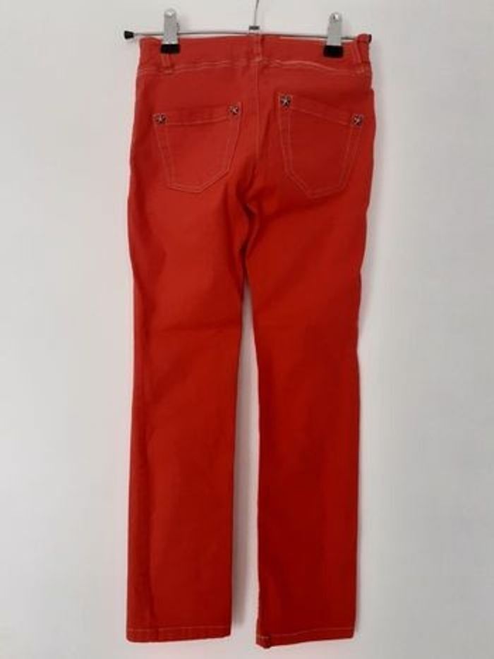 Pantalon fille de marque Jean Paul Gaultier ; Ton rouge ; Taille 8 ans ; Réglable ; En très bon état ( 2 traits plus clair dans le haut du dos : voir derniere photo).