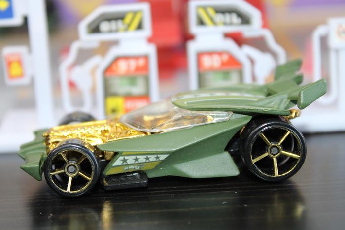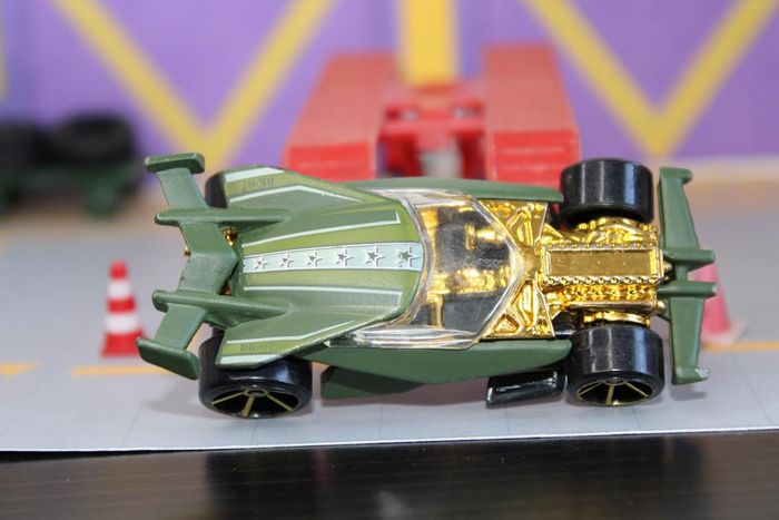 Voiture miniature fantaisiste Drift king Échelle : Environ 1:64 Couleur : Vert olive Vitrage : Clair Chassis : Plastique noir Intérieur : Doré Fabricant : Hot wheels Année de production : 2010 sur un moule de2007 Designer : Mark Jones Voiture miniature en bon état. Les axes de roues ne sont pas tordus, vitrage intact. Rares manques de peinture Réponds avec plaisir aux demandes d'informations complémentaires Réponse rapide envoi soigné dans les meilleurs délais