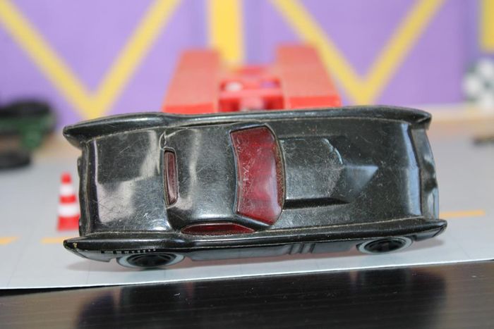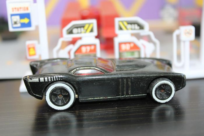 Voiture miniature fantaisiste The Gov'ner Échelle : Environ 1:64 Couleur : Noir. vitrage : Teinté rouge Chassis : Métal peint en noir Carrosserie en plastique Fabricant : Hot wheels Année de production : Première édition de 2004 Designer : Fraser Campbell Voiture miniature en bon état. Les axes de roues ne sont pas tordus, vitrage intact Réponds avec plaisir aux demandes d'informations complémentaires Réponse rapide envoi soigné dans les meilleurs délais