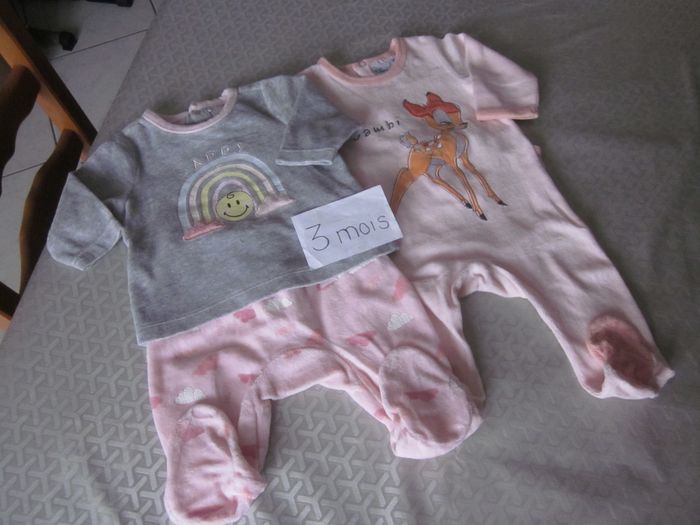 3m, 2 pyjamas velours dont un 2 pièces, smiley baby, disney