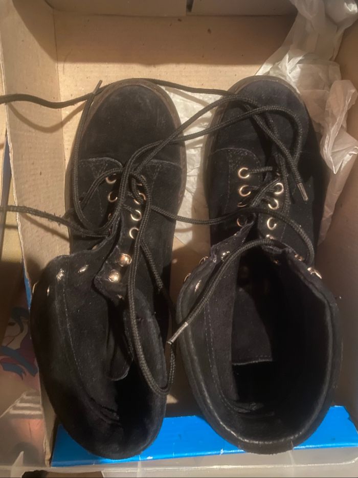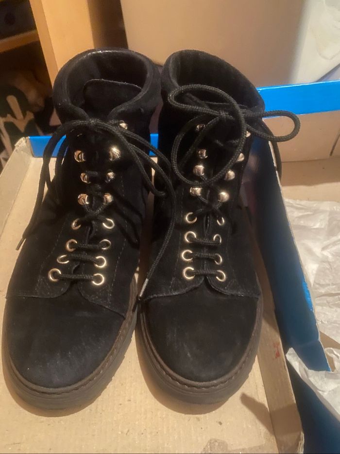 Paire de chaussures montantes , noires , portées une seule fois . Pointure 35 . 7€