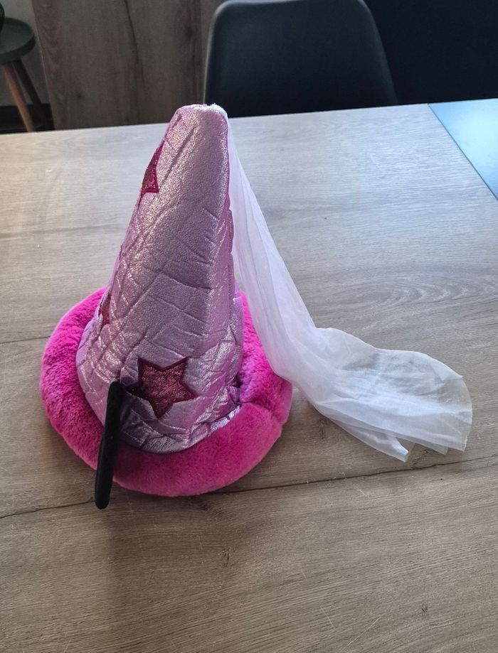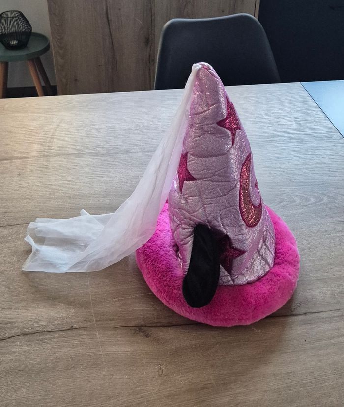 Chapeau Minnie Mouse Fantasia Minnie magicienne avec oreilles à motifs étoiles et lune, voile à l'arrière, contour en fourrure toute douce pailletée Disneyland Paris Très bon état (Taille unique)